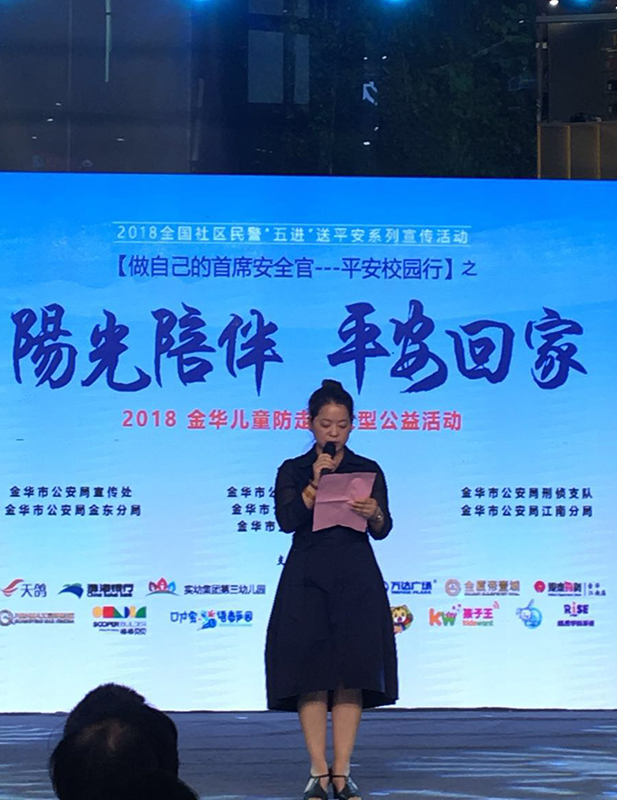 6月(yuè)2日(rì)上(shàng)午,由金(jīn)華市(shì)公安局、金(jīn)東(dōng)區(qū)教育局主辦,金(jīn)華市(shì)實驗幼兒(←ér)園教育集團第三幼兒(ér)園、大(dà)象家(jiā)長(cháng)會(huì)承辦的(de)“陽光(guāng)陪伴 平安回家(jiā)-2018金(jīn)華兒(ér)童防走失大(dà)型公益活動” 在萬達廣場(chǎng)正式拉開(kāi)帷幕。啓動儀式上(shàng),第三幼兒(ér)園園長(cháng)倪美(měi)芬作(zuò)為(wèi)代表上(shàng)台緻辭。