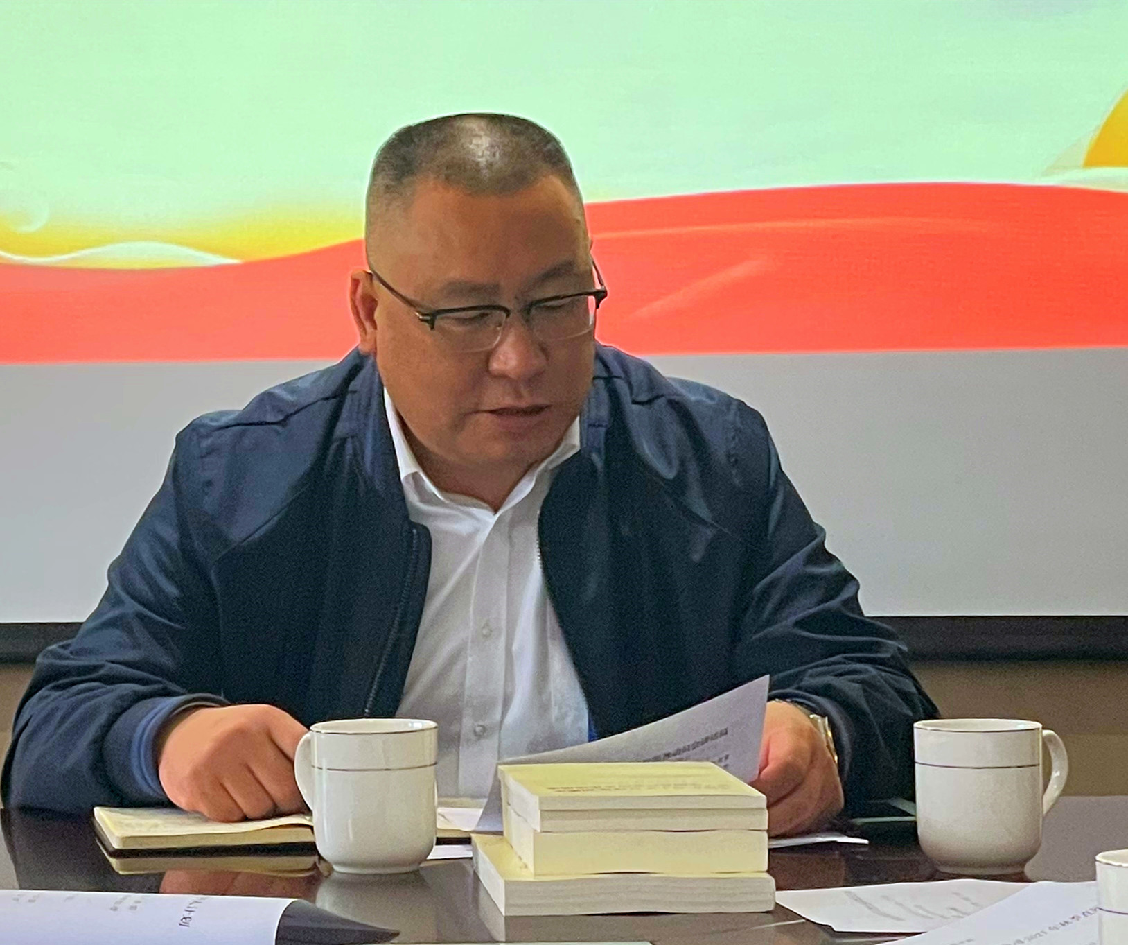 集團黨建人(rén)事(shì)部負責人(rén)、公司副總經理(lǐ)陳新根向會(huì)議(yì)傳達并帶頭學習(xí)了(le)省、市(shì)和(hé)市(shì)社發集團黨史<學習(xí)教育相(xiàng)關會(huì)議(yì)、文(wén)件(jiàn)精神。